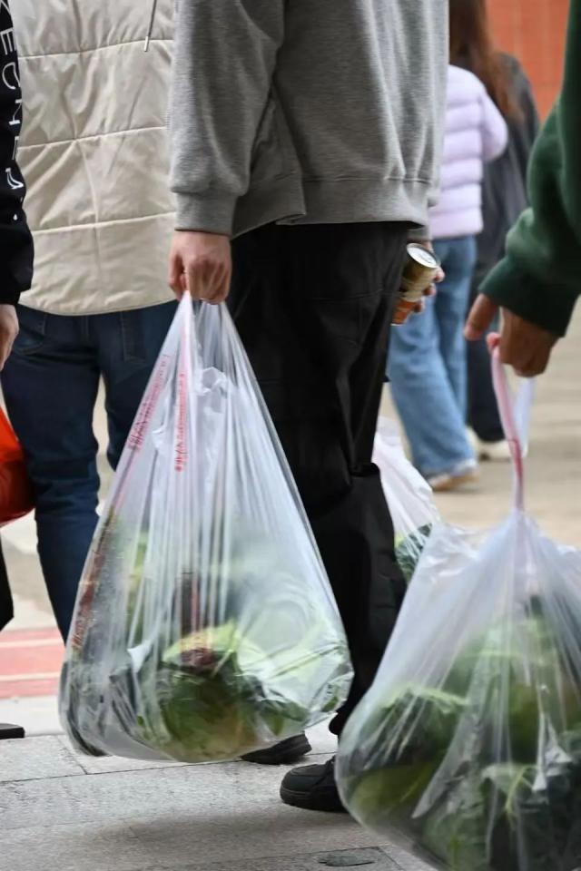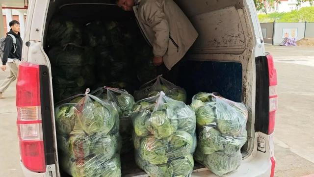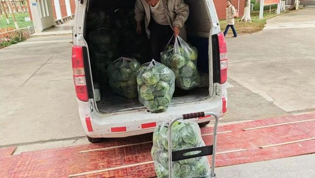 下午,实训楼3号楼一楼大厅开始分发“爱心礼袋”。打开礼袋的瞬间,翠绿饱满的包菜带着泥土气息扑面而来,引得老师惊叹:“这比超市买的还新鲜!”沉甸甸的不仅是蔬菜,更是商院人的温度。