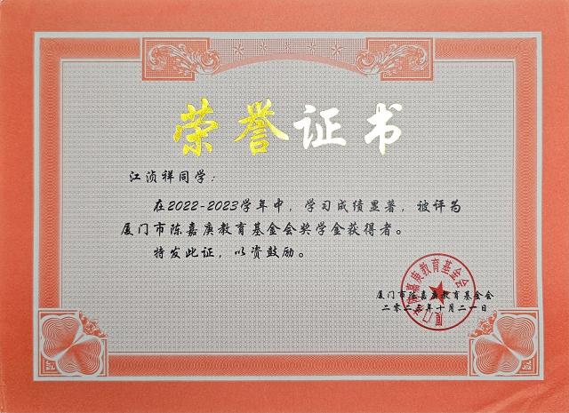 2022-2023学年荣获厦门市“嘉庚奖学金”