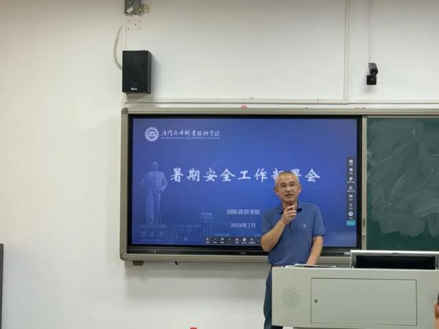 最后,学院党总支书记王火灵重申、强调了宗教及出国(境)有关政策,引导教职工坚定理想信念,自觉践行社会主义核心价值观,铸牢中华民族共同体意识,强调要严格落实出国(境)审批报备制度,并指出暑期要继续绷紧安全弦,辅导员要做好学生的暑期安全宣传教育,尤其关注防溺水、防骗、学生心理健康、交通安全、三下乡及双创留校学生安全,暑期前安全检查重点针对学生宿舍、教研室、实训室等场所,落实好防火、防盗、防台风等各类风险的巡查工作,同时提醒教师注意人身安全。