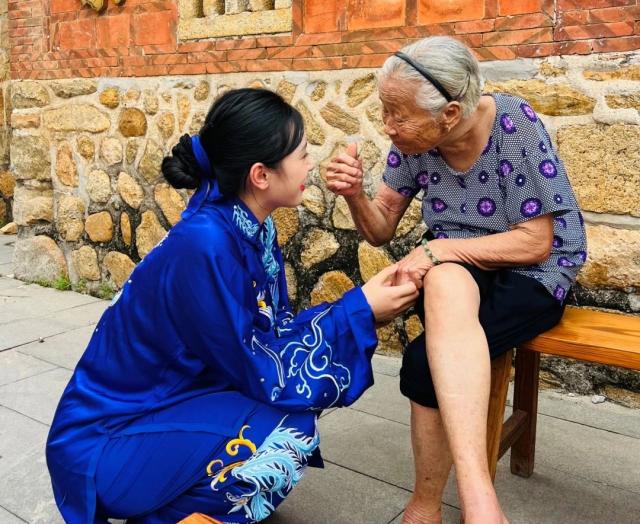作为暑期“三下乡”健身气功社会实践队的队长,她携七位队员前往厦门市翔安区宋江阵夏令营,针对青少年格外注重的视力问题带去了健身功法明目功,将所学健身功法教授给小朋友们,在莲塘村的“老人之家”中慰问长辈们,将养生功法内容与细节现场教学,助推健康生活延续下去。
