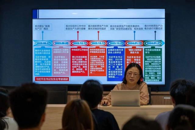 课上,同学们认真听讲、积极思考、探讨问题,对“新质生产力”的深刻内涵有了更加深入的认识。大家纷纷表示:面向未来世界科技前沿趋势,坚定创新自信,提升自身科技文化素养,争做发展新质生产力、推动高质量发展的“青春动能”。
