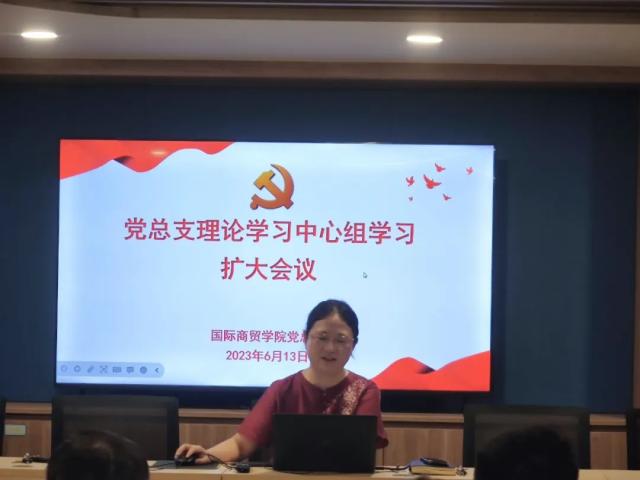 6月13日下午,国际商贸学院党总支在一站式党员活动室召开理论学习中心组扩大会议。会议围绕“加快建设教育强国为中华民族伟大复兴提供有力支撑”和“实干担当促进发展”两个专题进行深入学习和交流研讨。徐薇副院长主持会议,党总支班子成员、各支部书记、各教研室主任、专业负责人参加会议。