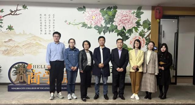 同日下午调研团一行又到宁波城市职业学院,受到了商学院院长胡坚达教授及参会老师的热情接待。商学院院长胡坚达教授、商学院国际经济与贸易专业主任孙春媛、跨境电子商务专业主任蔡文芳、商学院李雅老师一同参与座谈会。