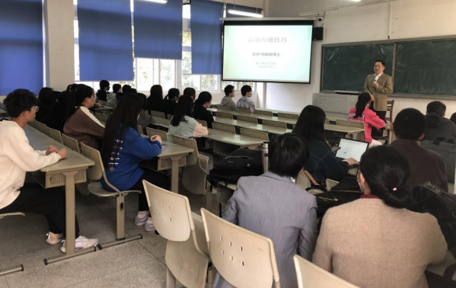 3月15日下午,国际贸易协会邀请国际商贸学院教师、来自台湾的杨建基博士为大家做了“高效沟通技巧”专题讲座。来自航海学院、机电学院和文旅学院等我校各个二级学院不同专业的四十多名学生和国际商务教研室的部分老师聆听了本次讲座。