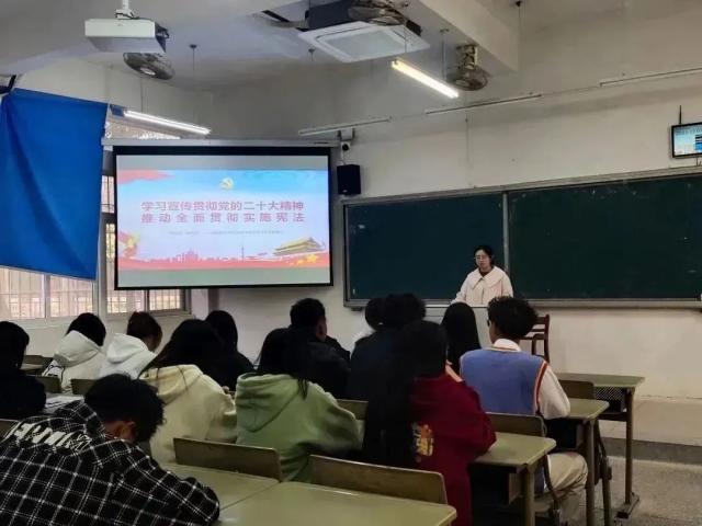 开展宪法宣传主题班会,辅导员带领同学们观看普法宣传视频,教育引导学生掌握宪法法律知识、树立宪法法律意识、养成遵法守法习惯,以实际行动践行法治思想,捍卫宪法尊严。