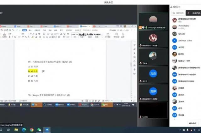 因疫情防控需要,陈颖慧老师(我院特邀厦门优优汇联信息科技有限公司企业讲师)本周在线上为跨境电商协会的20余名学生讲授了Shopee跨境电商平台基础运营技巧以及应如何进行客服管理。此外,陈老师还指导学生们注册开设了Shopee平台真实店铺,并为学生深入讲解了《ShopeeYoung帆计划基础运营技能证书》理论考试部分练习题,以便学生能顺利通过最终的认证考试。