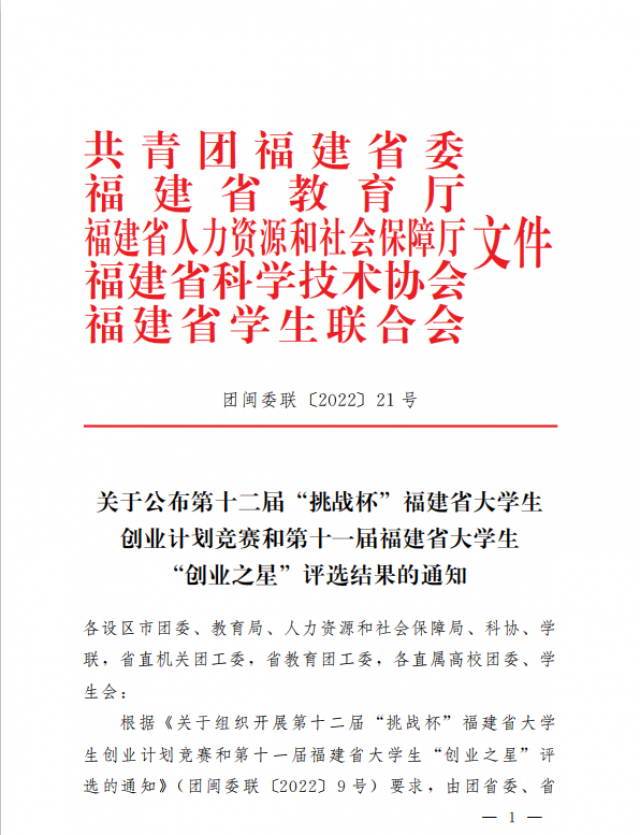 喜报Ι我院创新创业项目荣获第十二届“挑战杯”福建省大学生创业计划竞赛(职业院校组)铜奖