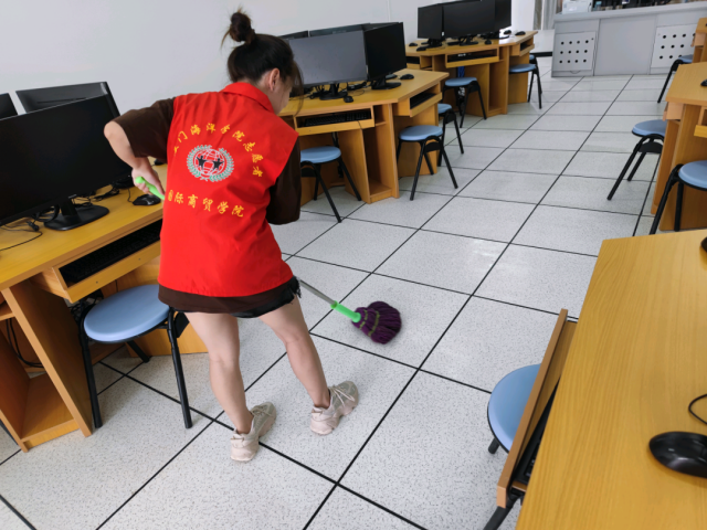 为了进一步加强劳动教育、美化校园环境,国际商贸学院志愿者协会于7月1日在实训楼开展卫生大扫除活动,对实训室进行了重点清扫。