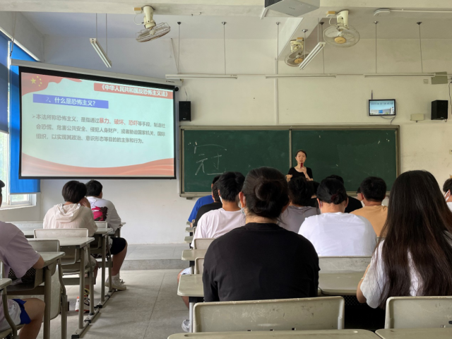 6月15日,廖宇琛老师组织金融3201、金融3202和港口物流3201班共155人开展了一场别开生面的反恐防暴安全教育。通过老师生动的讲解,同学们得到了警示,并知晓了随意在网络上发表不实言论的危害和严重后果。廖老师嘱咐同学们应该主动杜绝接触恐怖和暴力主义、劝阻家人和朋友珍爱生命,远离恐怖主义。