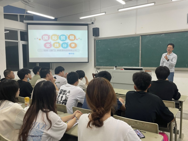 ​  5月11日,铂同(厦门)新能源科技有限公司总经理曾华宏先生应邀来到国际贸易实务1+N课堂,为我院物流3213班学生讲授国际贸易实务相关知识。曾经理结合自身企业实际情况,从国际文化差异、与不同国家贸易合作伙伴沟通注意事项、到未来工作定位等方面为同学们具体讲授在实际贸易过程会遇到的问题及处理方法。