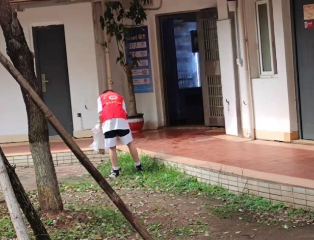 3月26日下午,30余名志愿者领取垃圾袋和手套后,分成四支小队伍,在1号楼、7号楼草坪、宿舍楼外围、宿舍楼道捡垃圾。风雨送春归,正值回南天,地面到处湿漉漉的,有些泥泞,给志愿者们的工作增加了难度,但是并不能阻碍他们的脚步,他们仍然深入每一个角落,努力做到垃圾不残留。