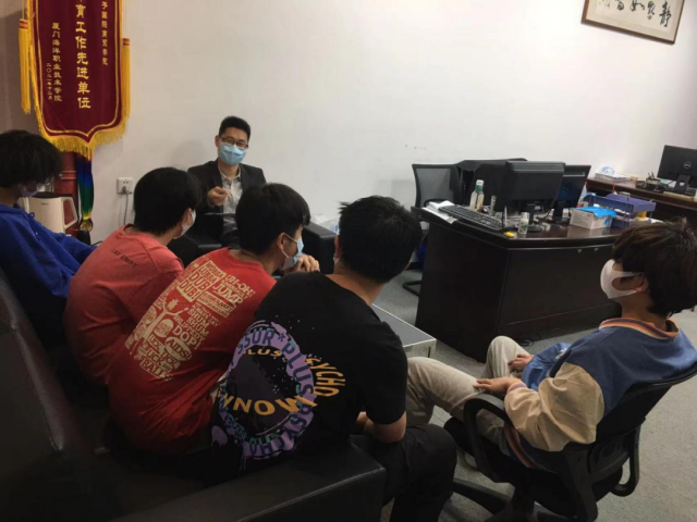 为了有效引导吸烟学生主动戒烟,认识到吸烟对身体的危害性,创建无烟学院,4月6日晚,我院党总支副书记黄昆仑约谈部分吸烟学生,与学生深入交流了解他们的吸烟情况,针对每个学生的情况提出了不同的措施,对吸烟较为严重的学生进行重点教育,查找问题根源,确定整改办法。