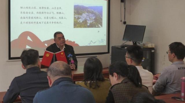 宣誓后,革命烈士后代,宋旭明老先生为全体教师上了一堂主题为《锄山抗日战争史》的党课。在宋旭明先生的讲述中,大家仿佛置身于锄山党支部建立和民间抗日运动之中,深刻了解了一代又一代锄山人为幸福生活所作出的贡献和牺牲。
