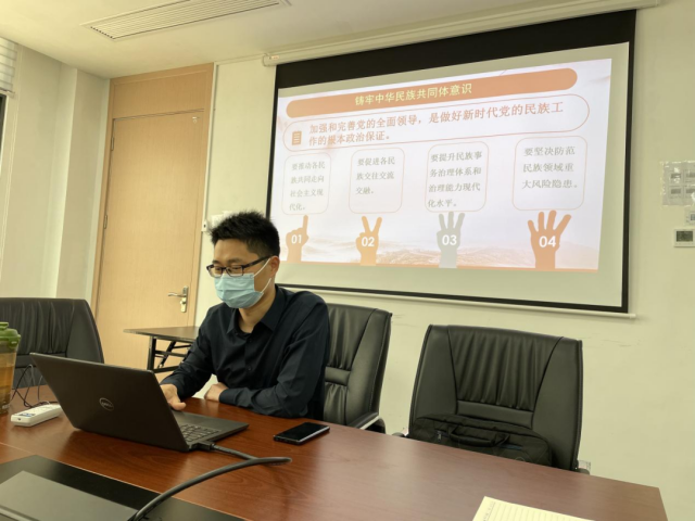 为深入贯彻落实党的十九届六中全会精神,学习习近平总书记在中央民族工作会议上的重要讲话,引导和推动学院师生以铸牢中华民族共同体意识为主线,增进民族团结,实现共同进步,国际商贸学院党总支于3月15日召开“铸牢中华民族共同体意识”主题宣讲会,总支委员、各支部书记及教师代表参会。