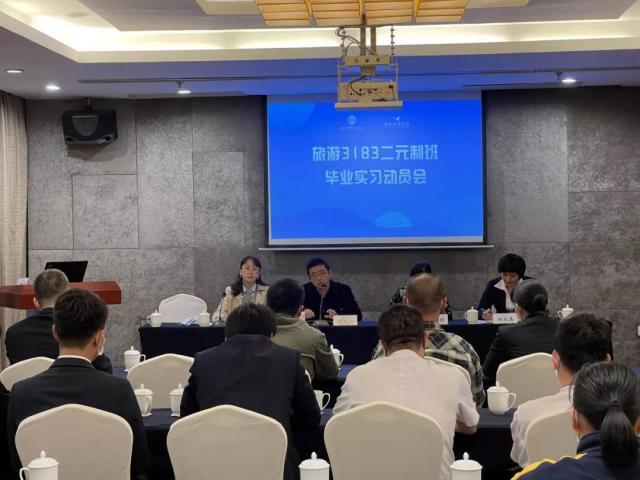 第一场会议是旅游管理3183二元制班的毕业实习动员会,曾启鸿副院长发言,对上学期教学工作及学员学习情况进行总结。班主任李辉老师做上学期的工作总结并布置新学期学生实习任务。
