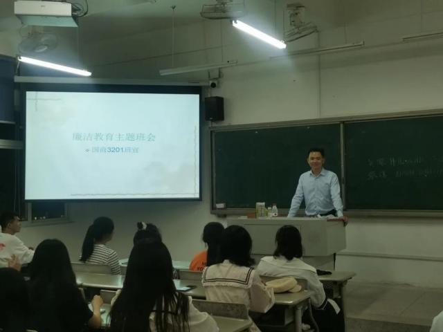 宣讲会上,新生辅导员对廉洁的概念进行了阐述并教导学生要领悟“清正廉洁”的真正含义,从我做起,从身边的小事做起,根植“清正廉洁”的理念,使“清正廉洁”成为立身立业之基。通过典型案例教育学生不向老师赠送礼品、土特产等,不以物质上的馈赠,而以精神上的尊重来营造“尊师重教”的良好风尚。