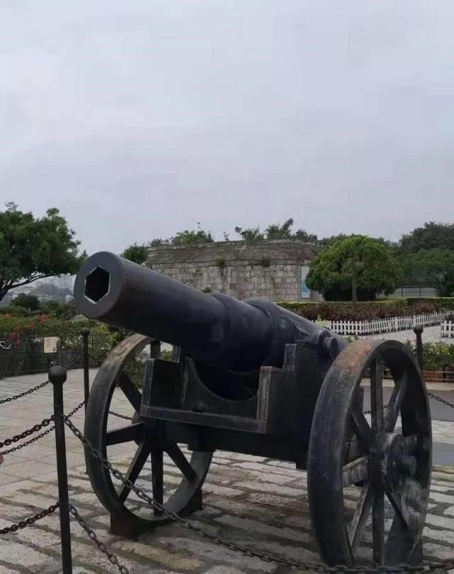 进了胡里山炮台的大门,就看到城墙外沿有一排笔直的清兵巡道。望着这条小道,我的眼前仿佛浮现出许多清兵正紧张地观察敌人的动向的情景。沿着长长的清兵巡道一直往前走,一座巨大的、用糯米伴以泥沙夯筑而成的堡垒呈现在我眼前,绕过堡垒,一口巨大无比的古炮映入我们的眼帘,炮口朝海,炮长13.96米,炮口内径28公分,是世界上保存最好最大的克虏伯大炮,享有“世界古炮王”的美誉。在胡里山炮台不但能参观世界上最大的炮,还能欣赏世界上最小的炮,口径只有十厘米,让人惊讶不已。