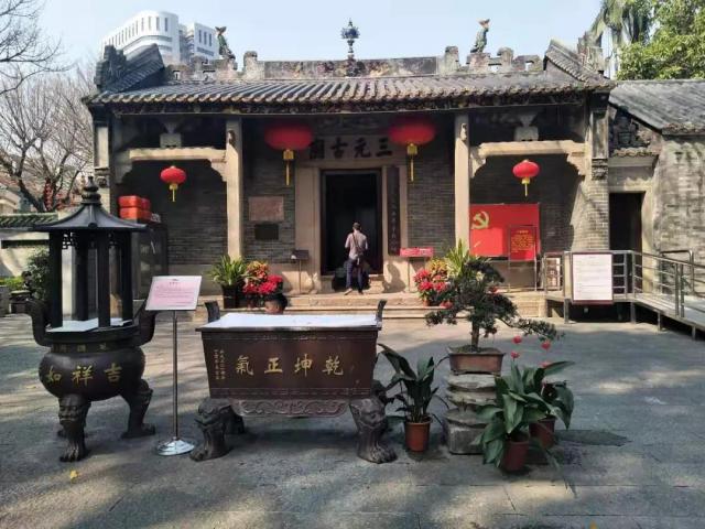 我了解到,在鸦片战争时期,英军兵临广州城下,侵占城外各炮台。一股英军到三元里奸淫劫掠,激起民愤。广州北郊乡民们自发组织聚集在三元里古庙前誓师抗英,取得了牛栏岗等地战斗的胜利,沉重打击了不可一世的英国侵略者。阅览时,我仿佛置身其中浮现出三元里人民英勇无畏反抗外来侵略斗争的场景。低头沉思,回想一百多年前三元里人民英勇抗击外来侵略者的斗争业绩可歌可泣,为此而牺牲的先辈们在这片红绵花盛开的土地上洒下了滴滴英雄热血。这正是,“手执锄矛举三星,同乡同心结联营;振我英雄气,牛栏岗上鬼魂惊。“三元里人民抗英斗争,体现出了三元里人民团结一心,义愤同赴、视死如归的爱国精神,为近代反侵略斗争史上写下了光辉的一页。