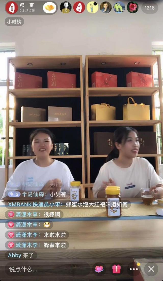 在短暂的试播后就进入正式的直播环节,四位小主播都分别对家乡好物:稻米、茶叶、蜂蜜、灵芝都做了详细的介绍,并且得到了观众的认可与喜爱,在抖音平台获得1216的观看流量,也在一直播得到了3500的观看流量。