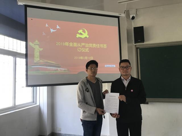 为贯彻落实省委全面从严治党的决策部署,深入落实全面从严治党的主体责任,3月12日,工商系党党总支与各支部书记签订了从严治党责任书,并就我系各党支部书记从严治党的工作提出了明确要求。工商系张宇泉副书记、徐薇副主任、工商系各党支部书记和党员出席了本次会议。