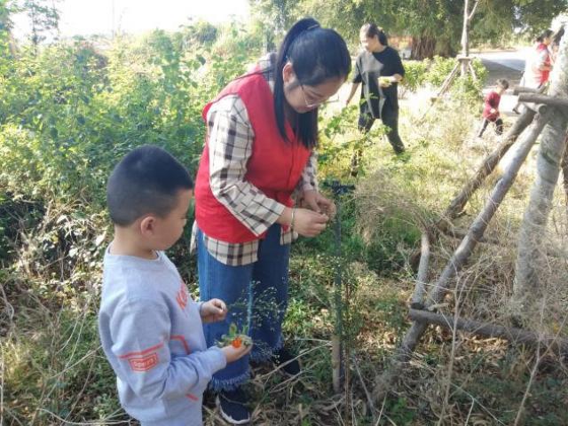 接着,社工工作人员和工商系志愿者带领大家到室外去寻找贴画材料,收集好材料后小朋友们在家长和志愿者的协助下开始制作创意作品,每个展示的作品都很精致。