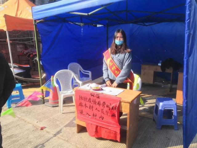 金融3182班唐柔同学在寒假期间主动报名参加了由贵州省铜仁市松桃苗族自治县平头乡组织的疫情防控工作,在村口和入街口进行志愿服务。她每天都积极协助有关职能部门和街道社区、村委会等基层组织,做好疫情信息的收集、报告、人员隔离、秩序维护及公共卫生维护等工作。她相信只要人人多一份自觉与包容,主动关心近邻、及时化解矛盾,一定能稳定社会情绪,战胜疫情。