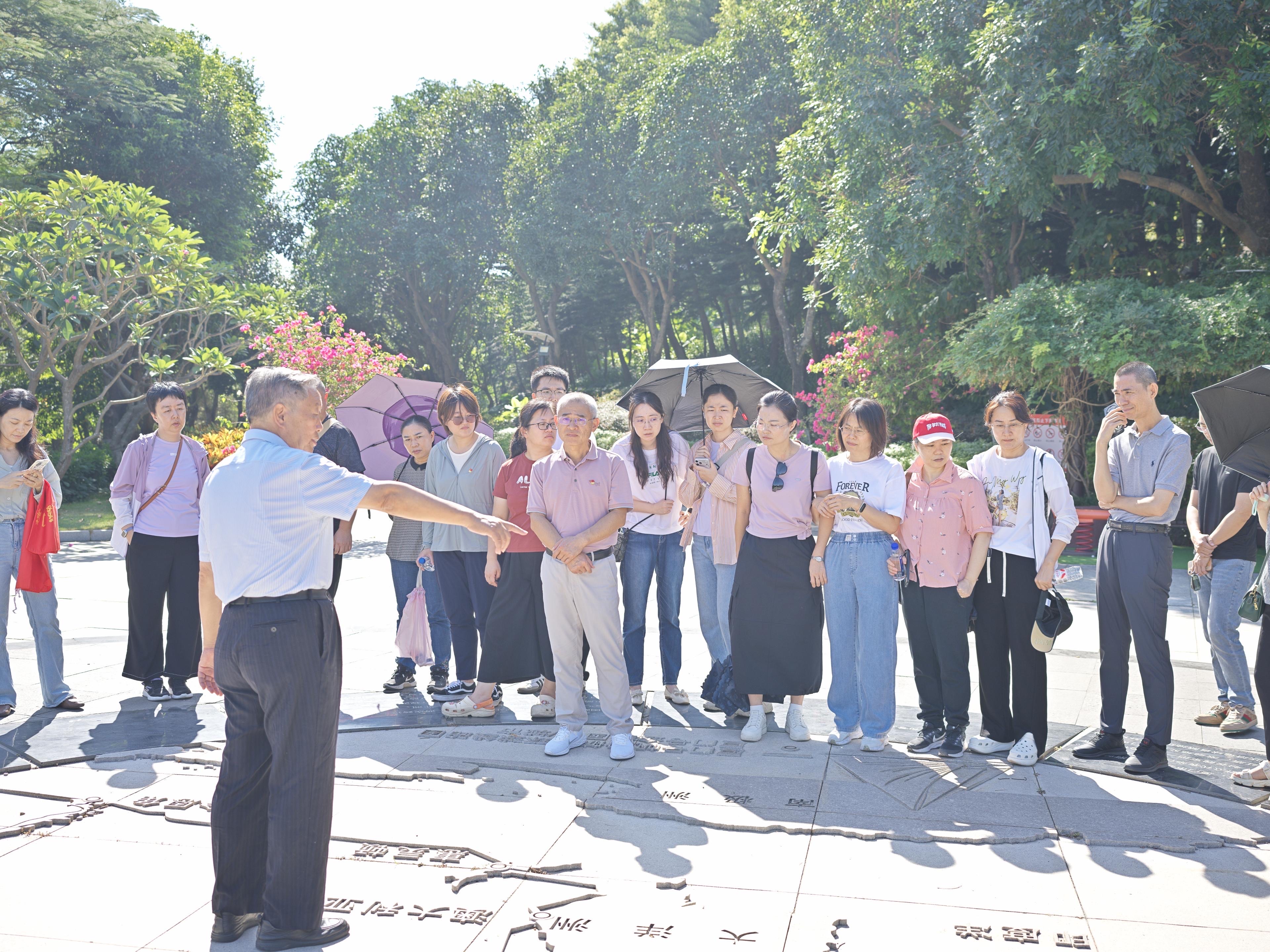 11月9日上午,国际商贸学院国商教研室党支部、物流管理教研室党支部与数智电商教研室党支部联合前往厦门五通灯塔公园,开展“纪念抗战胜利80周年”主题党日活动。特邀厦门市原副市长、市教育基金会原理事长潘世建先生全程讲解,学院党总支书记王火灵和教师党支部全体党员参加。