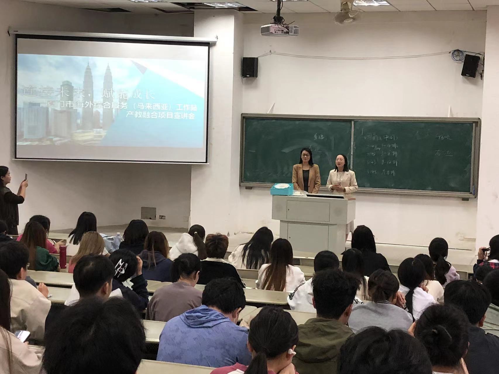 11月25日,马来西亚燕遇集团执行董事、东盟(马来西亚)文化经济交流服务中心执行董事陈慧琼女士一行莅临国际商贸学院,面向全院2024级学生开展专场宣讲会。本次活动以“职教出海·产教融合”为主题,旨在通过校企协同育人新模式,推动跨境电商人才培养与产业实践深度融合,助力RCEP区域经济高质量发展。