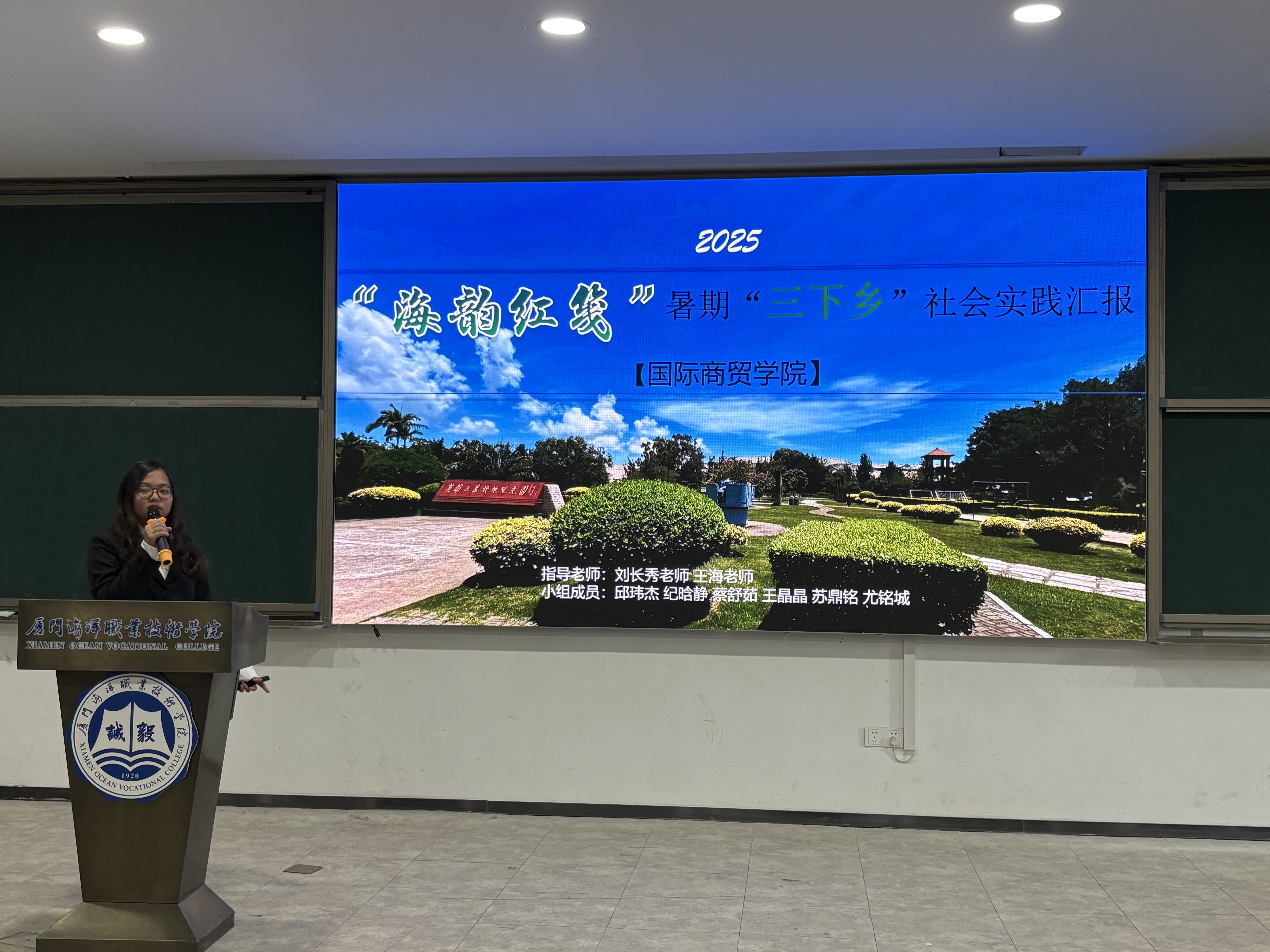 以青春之名,赴时代之约。盛夏的骄阳点燃了青年学子的实践热情,广袤的乡村见证了知行合一的青春力量。今年暑期,在乡村的实践沃土上,国际商贸学院10支团队紧扣乡村振兴战略需求,将专业所长与基层所需精准对接,在服务群众、奉献社会中锤炼意志、增长才干,用实际行动诠释新时代青年的责任与担当。12月2日,学院2025年暑期“三下乡”社会实践活动成果汇报暨表彰大会在翔安校区隆重举行。学院党总支书记王火灵,组织员彭幸子和特邀评委老师:江媚、胡从旭、林新梅、陈炜丹老师,以及团队指导老师、实践队成员齐聚一堂,共同回顾这场用脚步丈量土地、用专业赋能乡村的实践征程。