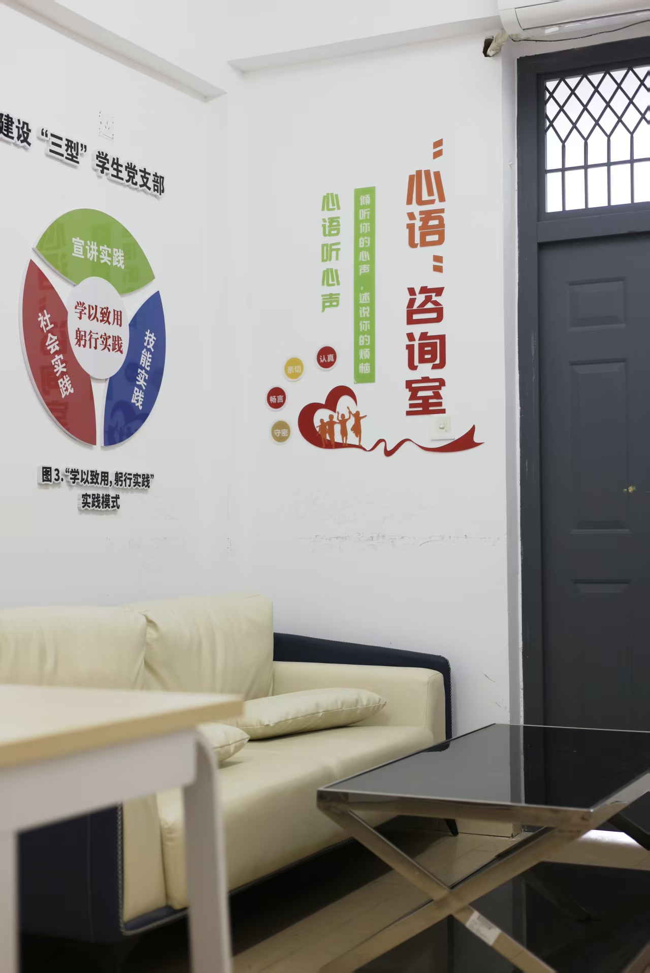 工作室位于宿舍楼7201,设有独立的咨询区与团体活动区,环境温馨、安静、私密。始终将学生的隐私保护置于首位,确保所有谈话与记录严格保密,让学生能够安心敞开心扉,获得真正有效的支持。