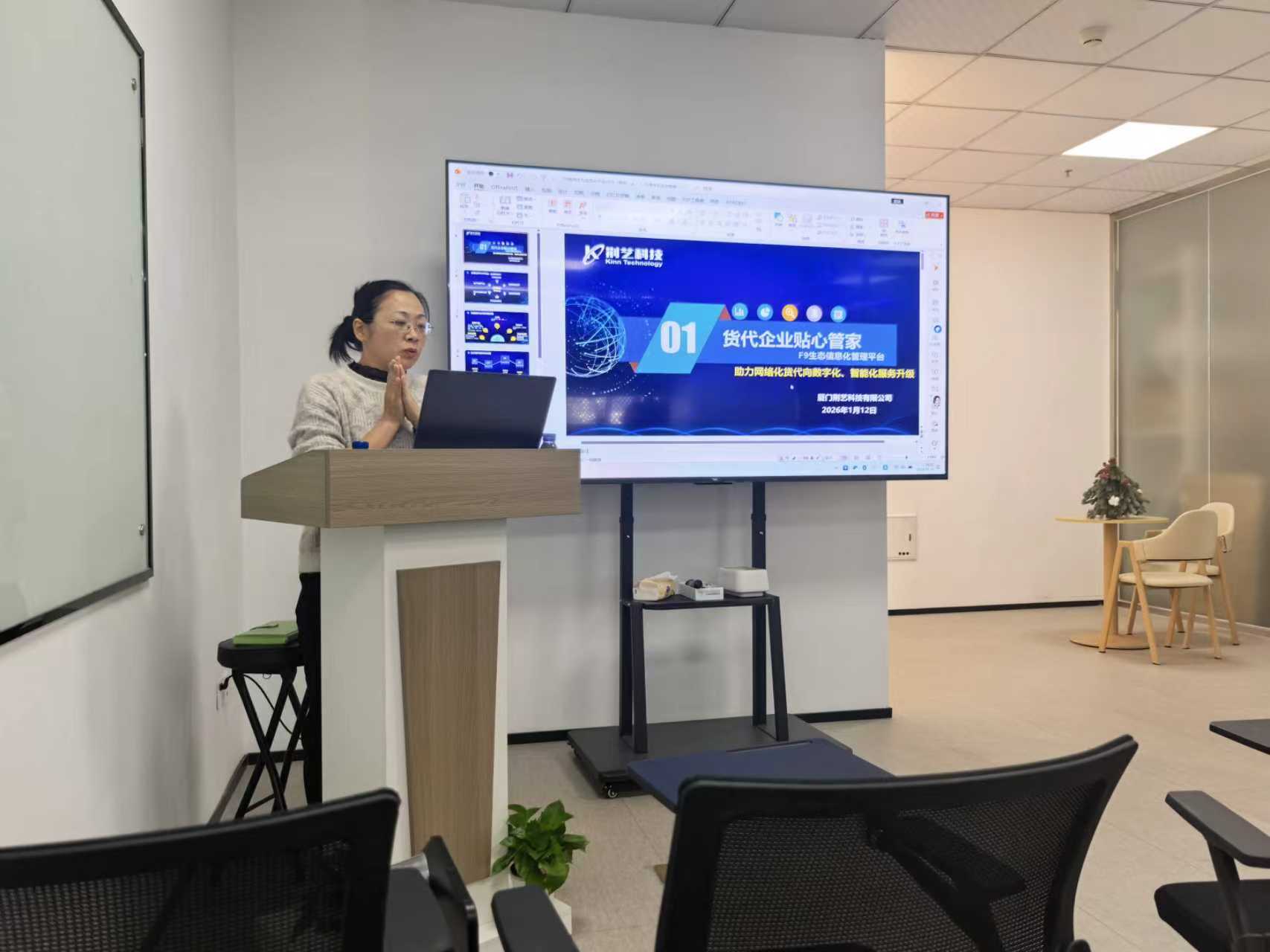 厦门荆艺科技有限公司法人代表、总经理郑志鹏详细介绍公司发展历程、业务布局及核心产品,学院老师一行重点了解了该公司核心产品F9 PAAS—步荆云物流生态枢纽平台。该平台以 “协同、高效、生态、互联” 为理念,通过数字化手段实现货运代理企业的上下游对接、移动微应用支持,具备货物动态跟踪、一键拖车、一键投保、一键报关等强大功能,还支持银企直连、供应链金融等创新应用,并嵌入AI功能,可帮助企业智能办公、降本增效,在跨境电商、集装箱运输、多式联运等场景中展现出显著的行业价值。