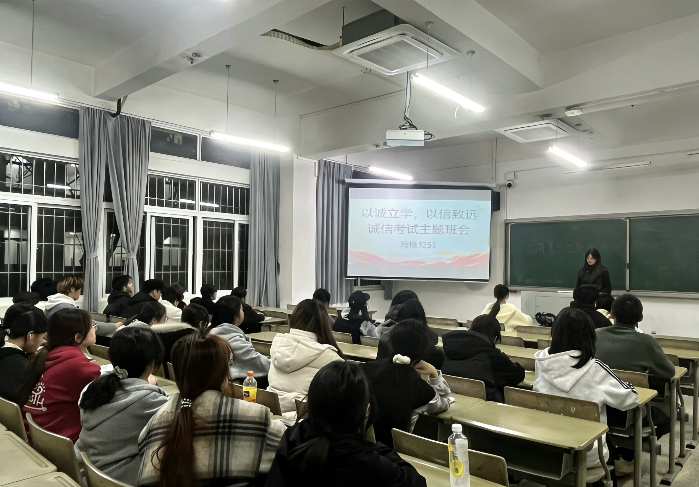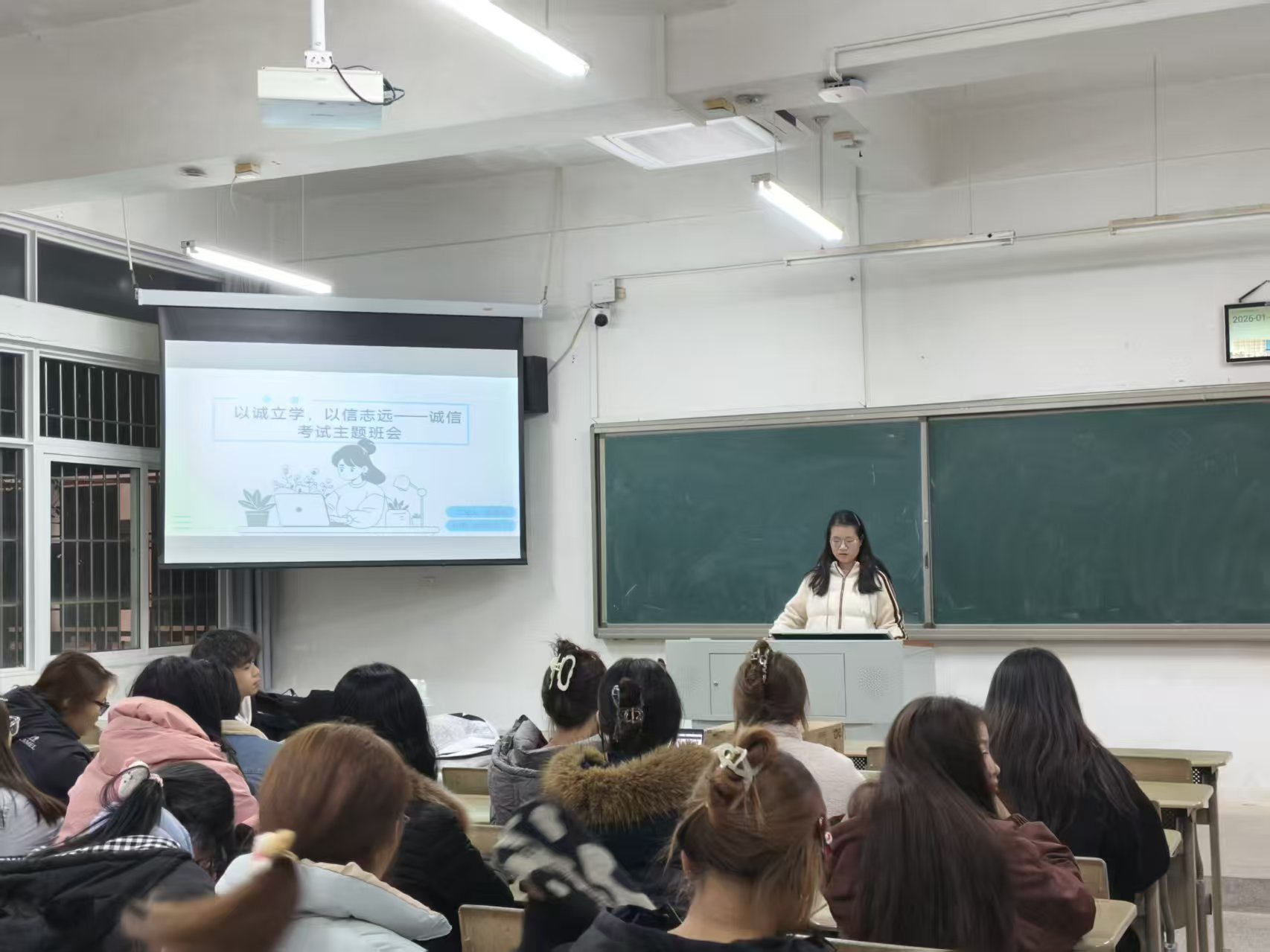 近日,我院组织各班级开展“以诚立学,以信致远”诚信考试主题班会。班会围绕诚信应考主题,通过解读校规校纪、剖析真实案例、分享诚信故事等形式,引导学生树立诚信意识,严肃考风考纪,进一步强化学风建设,营造公平公正的学习与考试环境。