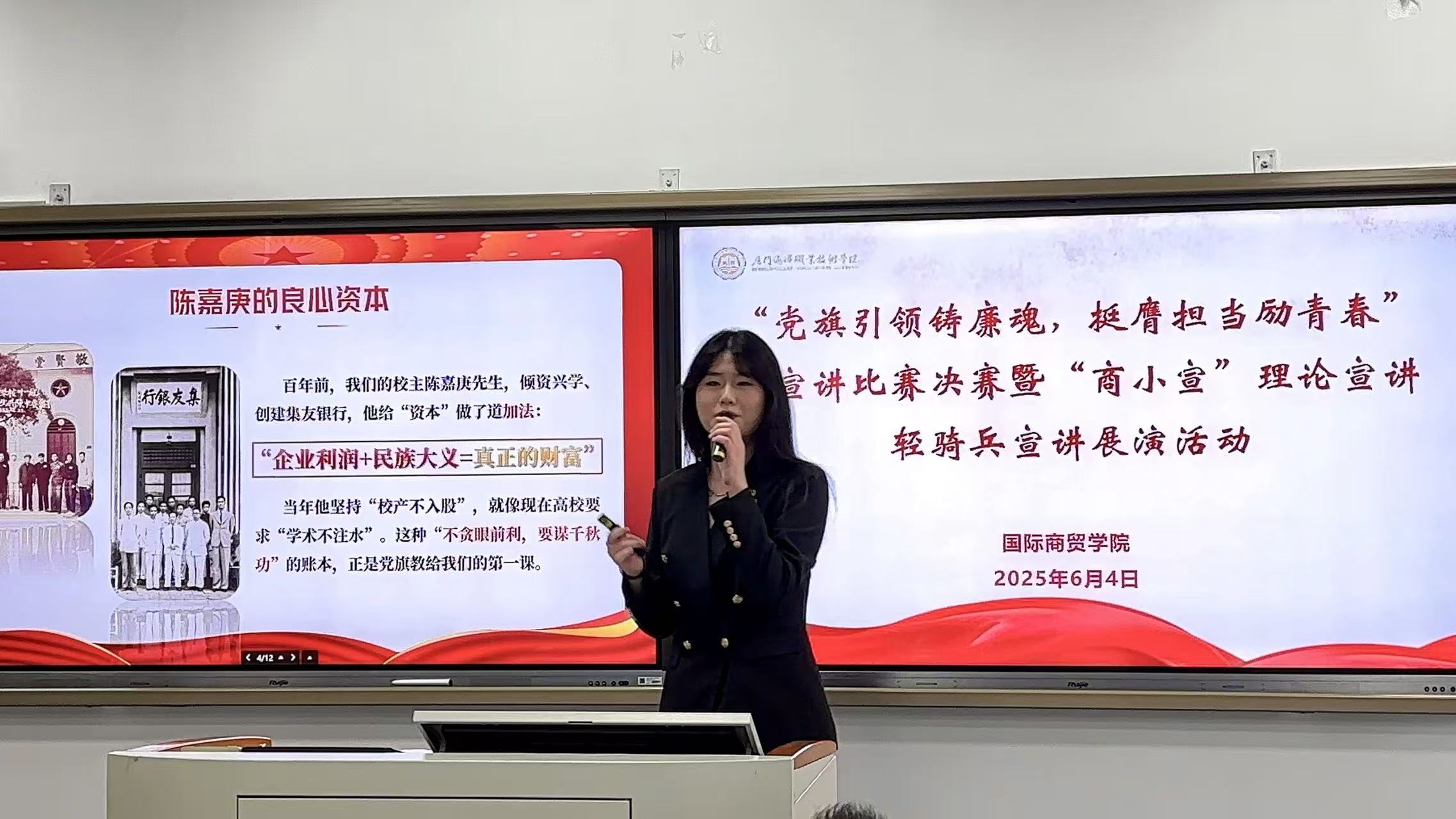 “青年者,当坚守初心,勇担使命。”作为入党积极分子,朱小清始终秉持坚定的理想信念与无私的奉献精神。她积极要求思想上进,2025年3月至4月参加国际商贸学院第二期青马工程“学思班”学习;她主动践行社会责任,累计献血量超500ml,用热血传递爱心。
