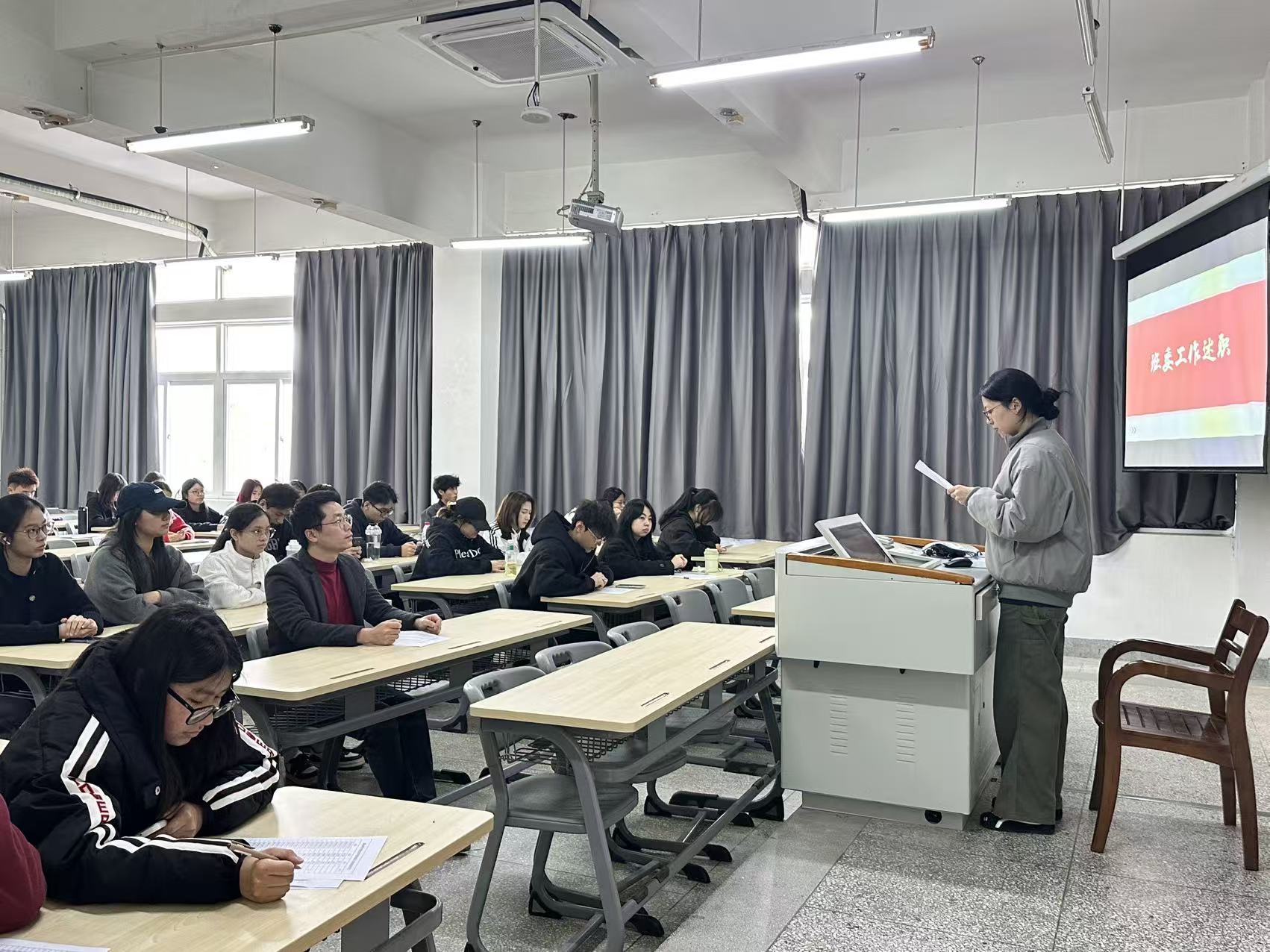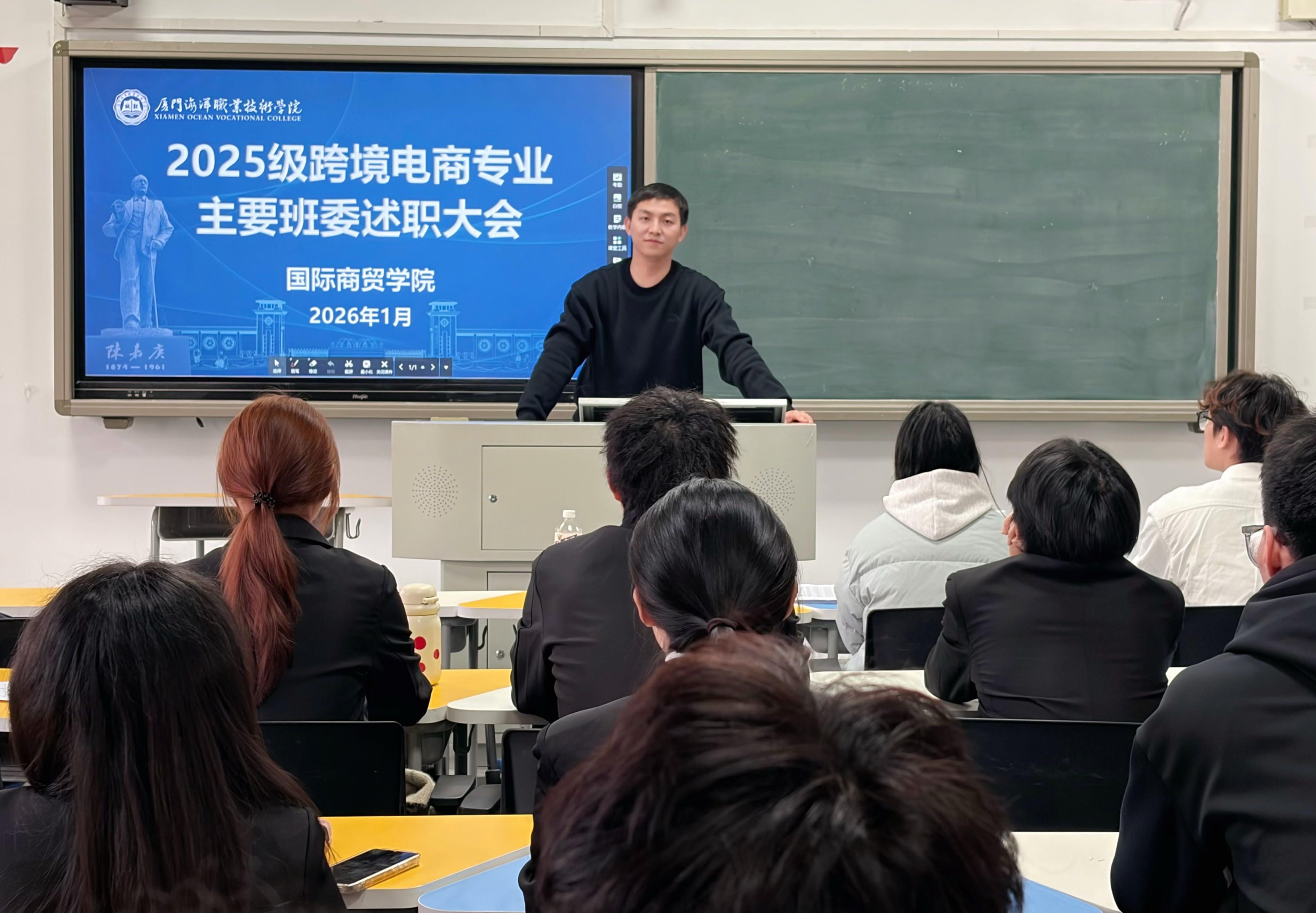 班委则聚焦履职复盘与团队协作提升,他们依次登台,围绕班风学风建设、日常事务统筹、专业活动推进、同学服务保障等核心工作,细数履职以来的举措与实绩,坦诚剖析问题不足,并结合专业实际明确改进方向与具体计划,以务实态度交出“履职答卷”,为新学期发展锚定清晰方向。
