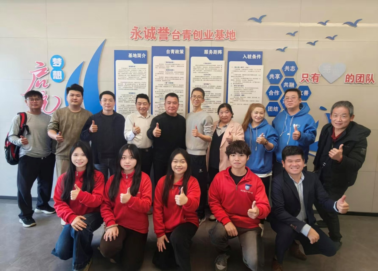 永诚誉台青创业基地负责人游清一、洪阿冬及基地创业的台青们对学院师生的到来表示热烈欢迎,带领参观基地办公区域、创业孵化空间及特色展示区,详细介绍基地的发展历程、运营模式、服务体系及入驻台青企业的发展现状。据悉,基地聚焦台青创业就业全周期需求,构建“政策扶持+能力提升+资源对接+市场拓展”的全链条支持体系,致力于为台青打造低成本、高赋能、可持续的创业生态,目前已吸引多位台青入驻,培育出一批兼具闽台特色与市场潜力的创业项目,成为推动两岸青年合作、促进文化交融的重要平台。