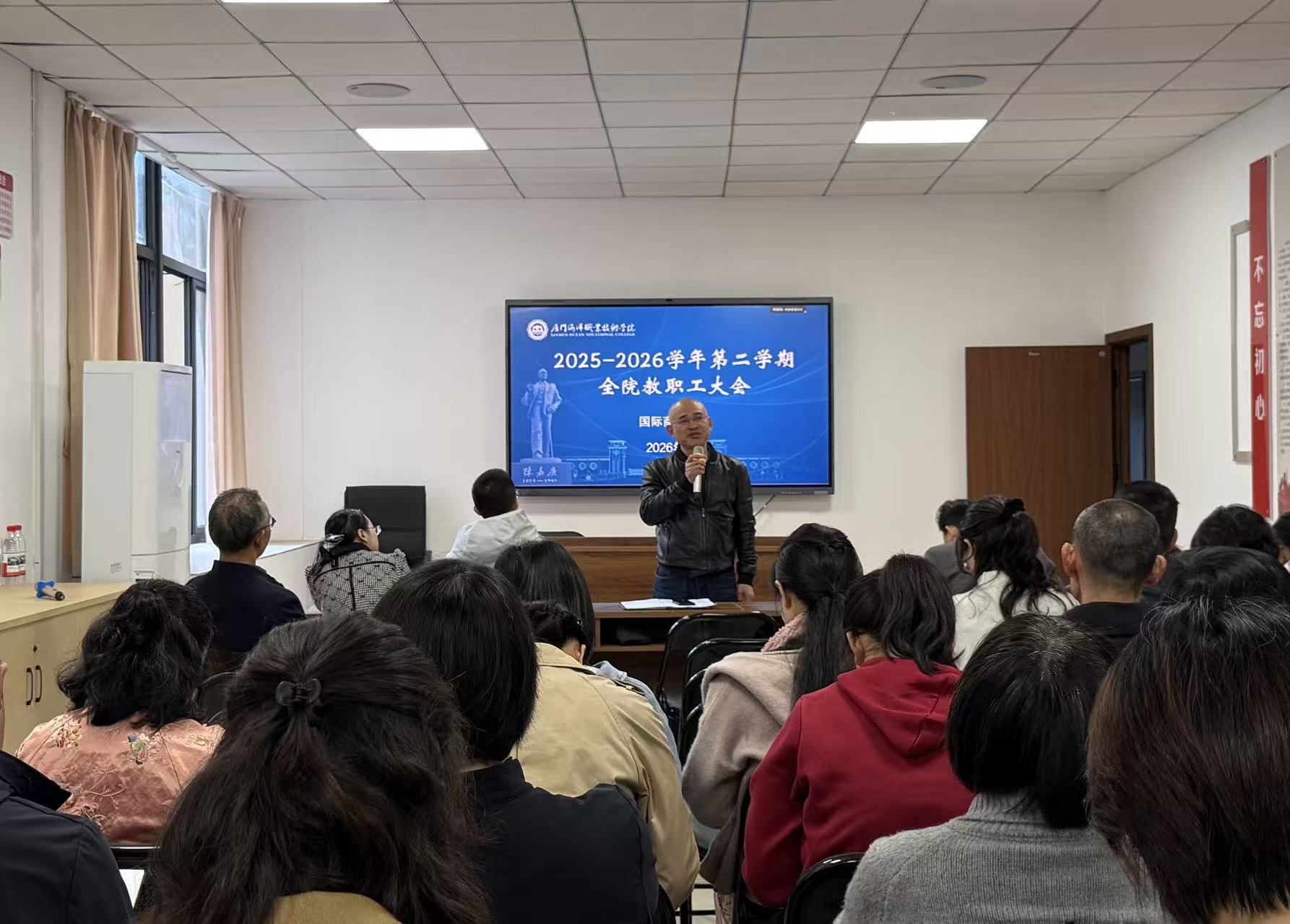 3月1日,我院召开2025-2026学年第二学期期初教职工大会。会议深入分析当前发展形势,系统安排新学期教学、管理、育人等核心任务,共同为新学期学院发展谋篇布局。学院党政班子及全体教职工参加。